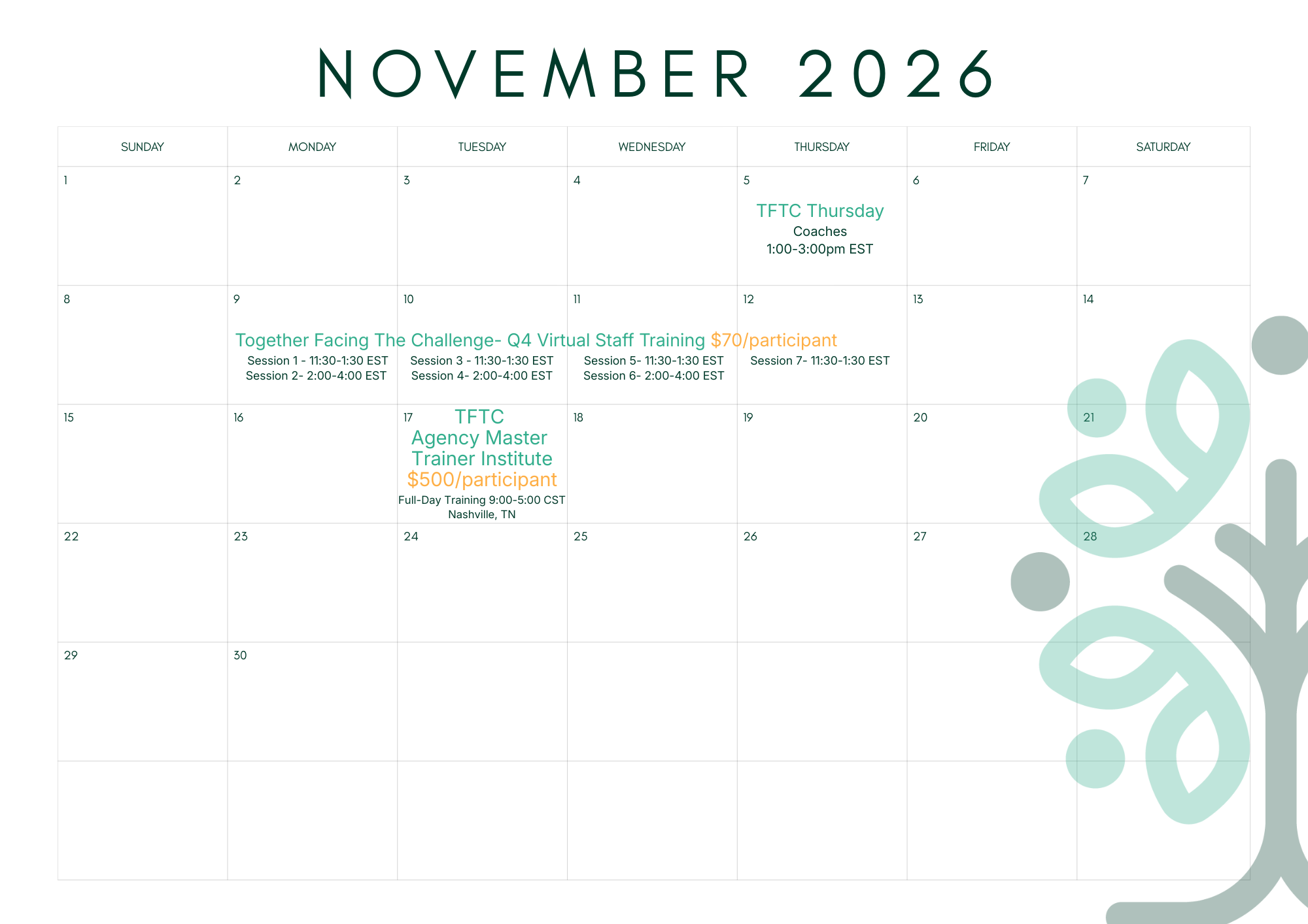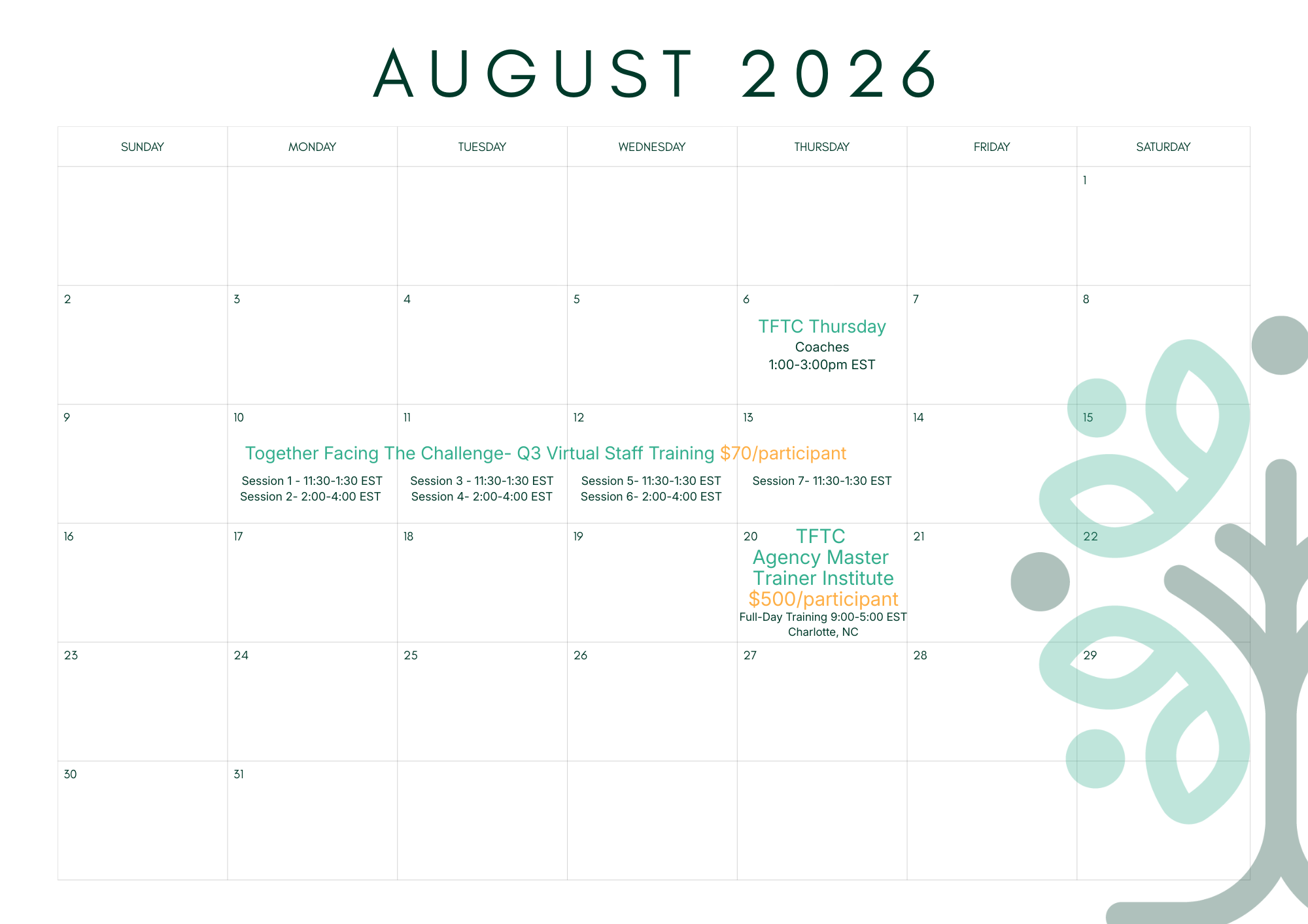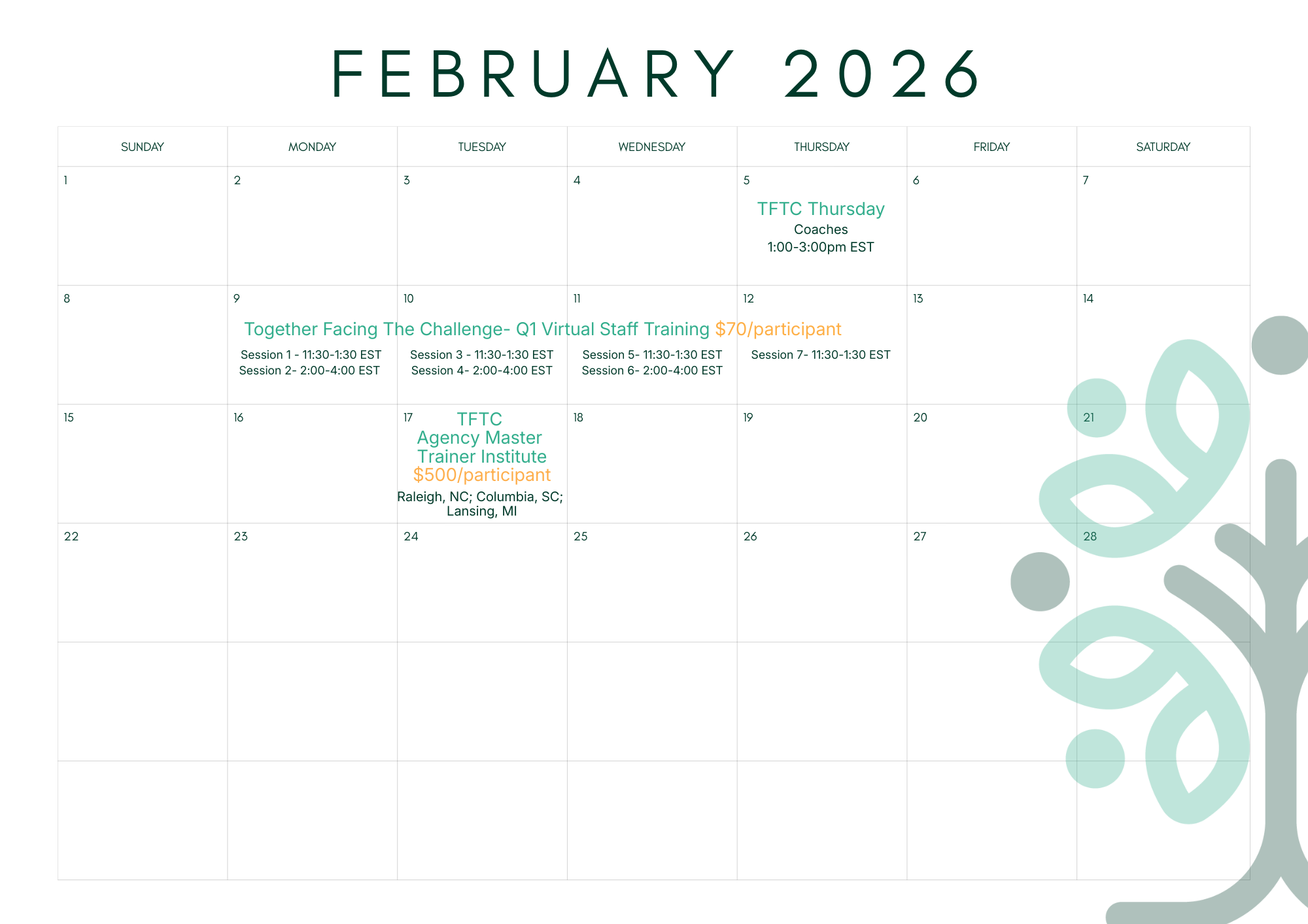 TFTC- Quarter 1 Virtual Staff TrainingFebruary 9-12, 2026$70/participant