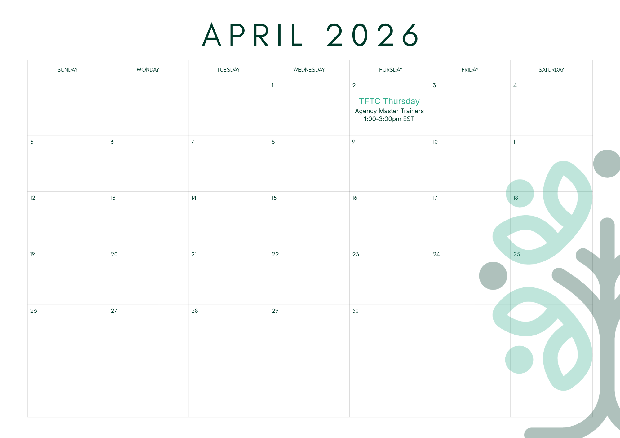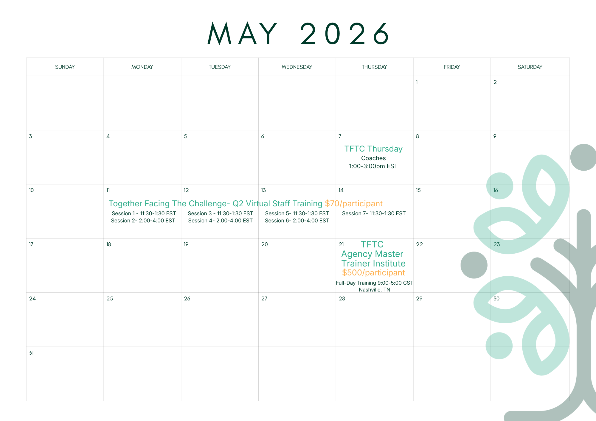 TFTC- Quarter 1 Agency Master Trainer InstituteFebruary 17, 2026$500/participant